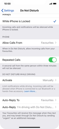 7. Select settings for Do Not Disturb While Driving