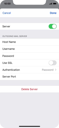 Press Password and key in the password for your email account. Please note that if you're using Vodafone's outgoing server, leave the password field empty.