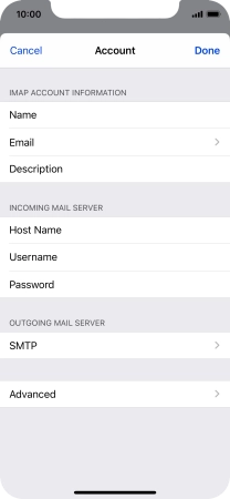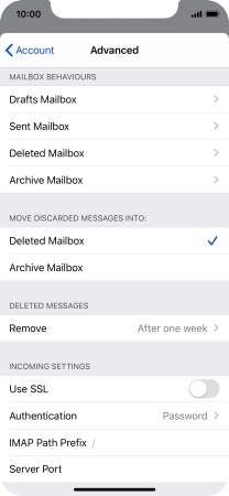 Press the required email account and follow the instructions on the screen to select settings for the specific account.