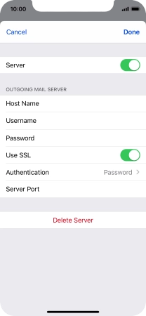 Press Password and key in the password for your email account. Please note that if you're using Vodafone's outgoing server, leave the password field empty.