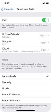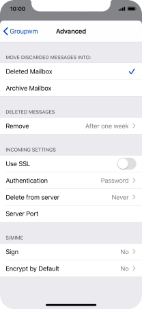 Press the required email account and follow the instructions on the screen to select settings for the specific account.