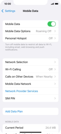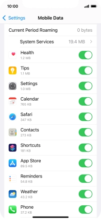 Press the indicator next to "Mobile Data" to turn the function on or off.
