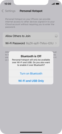 2. Key in the password for personal hotspot
