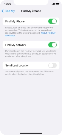Select settings for Find My iPhone on your Apple iPhone Xs iOS 17