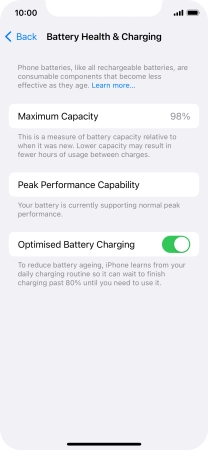 Press the indicator next to "Optimised Battery Charging" to turn the function on or off.