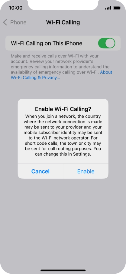 Press the indicator next to "Wi-Fi Calling on This iPhone" to turn the function on or off.
