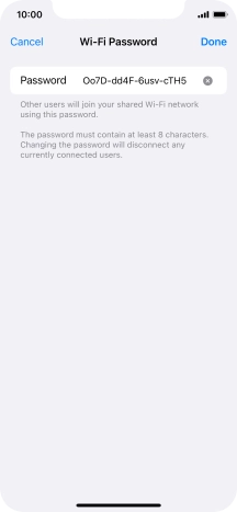 2 Key in the password for personal hotspot