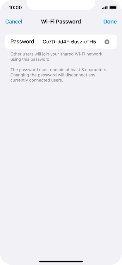 Key in the password for personal hotspot