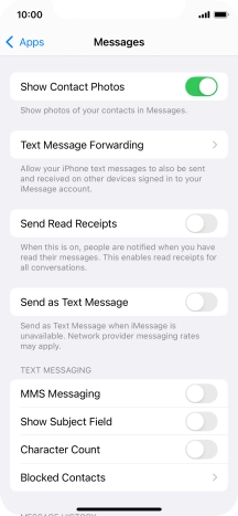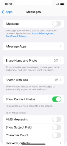 Press the indicator next to "iMessage" to turn on the function.