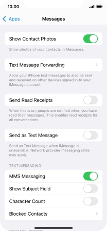 Press the indicator next to "MMS Messaging" to turn on the function.