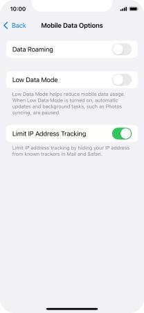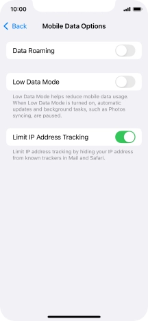 Press the indicator next to "Data Roaming" to turn the function on or off.
