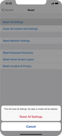Press Reset All Settings. Wait a moment while the factory default settings are restored. Follow the instructions on the screen to set up your phone and prepare it for use.
