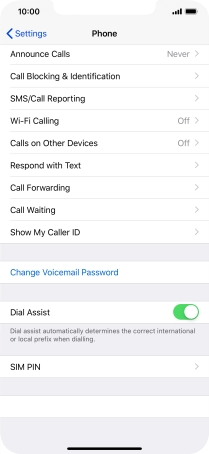 Press the indicator next to "SIM PIN" to turn the function on or off.