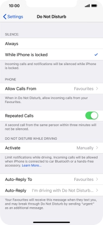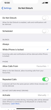 Press the required setting to select which contacts can call you even though Do Not Disturb is turned on.