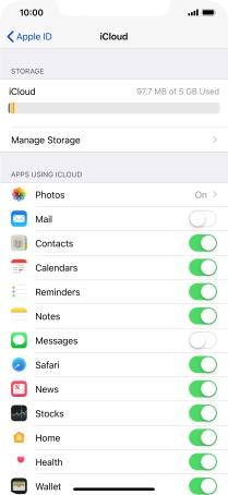 Press the indicator next to "iCloud Drive" to turn file synchronisation on or off.