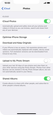 Press the indicator next to "Upload to My Photo Stream" to turn the function on or off.