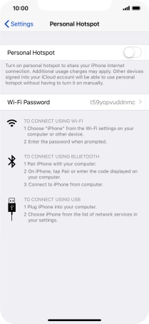 Press the indicator next to "Personal Hotspot" to turn on the function.
