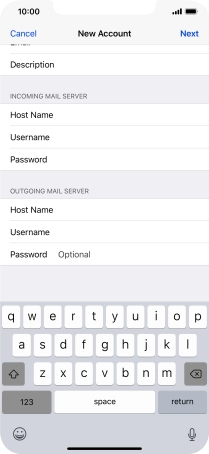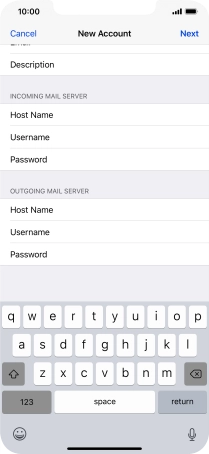 Press Host Name and key in the name of your email provider's incoming server.