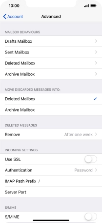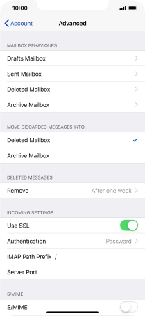 Press the required email account and follow the instructions on the screen to select settings for the specific account.