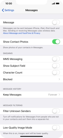 Press the indicator next to "MMS Messaging" to turn on the function.