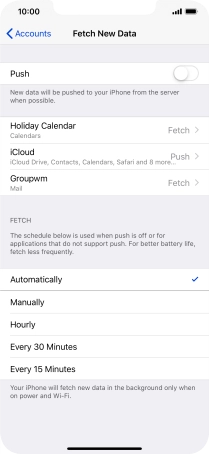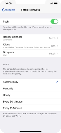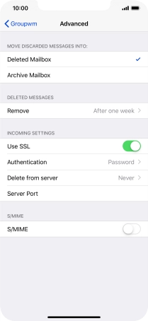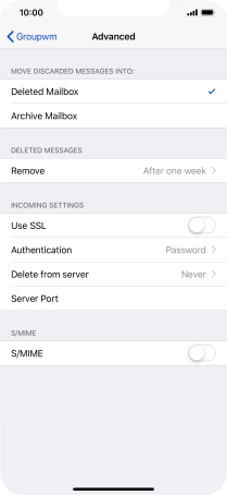 Press the required email account and follow the instructions on the screen to select settings for the specific account.