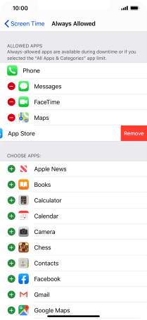 Press the remove icon next to the required app to remove it from the list of allowed apps during Downtime.
