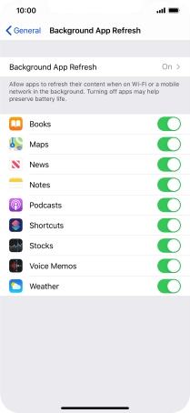 Select settings for background refresh of apps on your Apple iPhone Xs Max iOS 13.0