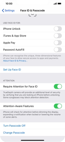 Turn use of phone lock code on your Apple iPhone Xs Max iOS 13.0 on or off