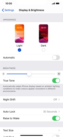 If you turn on the function, press Options and follow the instructions on the screen to select the required period of time for Dark Mode.