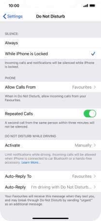 7. Select settings for Do Not Disturb While Driving