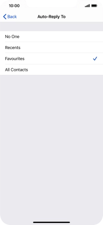 Press the required setting to select which contacts should automatically be notified that Do Not Disturb While Driving is turned on.