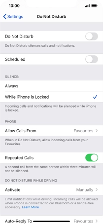 Press the required setting to select which contacts can call you even though Do Not Disturb is turned on.