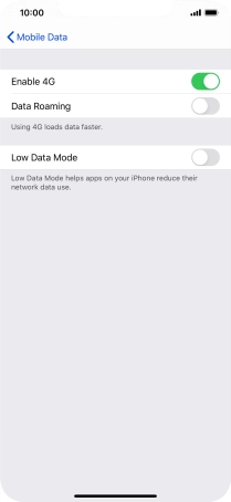 Press the indicator next to "Enable 4G" to turn use of 4G on or off.