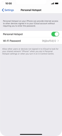 Press the indicator next to "Personal Hotspot" to turn on the function.