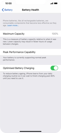 Press the indicator next to "Optimised Battery Charging" to turn the function on or off.