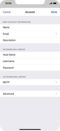 Press Host Name and key in the name of your email provider's outgoing server. Please note that if you can't send email messages when using your email provider's outgoing server, key in smtp.vodafone.net.au (Vodafone's outgoing server).
