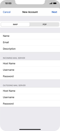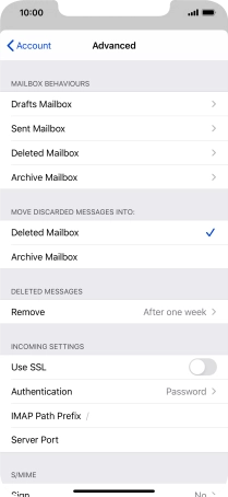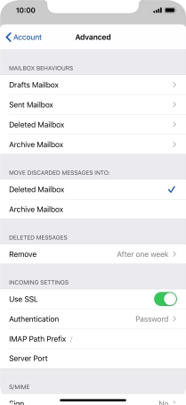 Press the required email account and follow the instructions on the screen to select settings for the specific account.