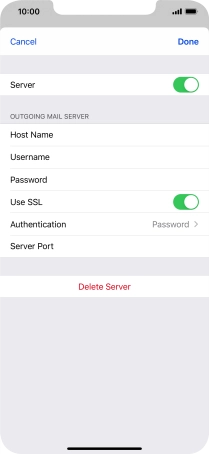 Press Password and key in the password for your email account. Please note that if you're using Vodafone's outgoing server, leave the password field empty.
