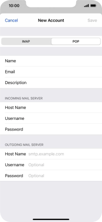 Press Password and key in the password for your email account. Please note that if you're using Vodafone's outgoing server, leave the password field empty.