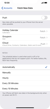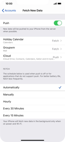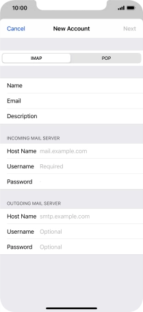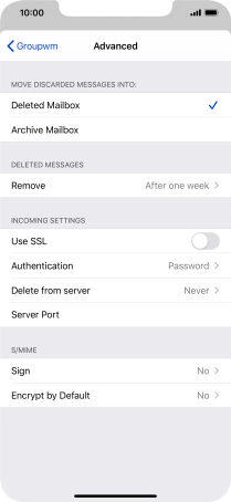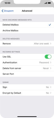 Press the required email account and follow the instructions on the screen to select settings for the specific account.