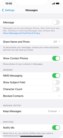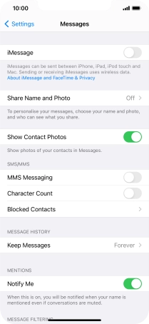 Press the indicator next to "MMS Messaging" to turn on the function.