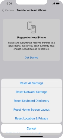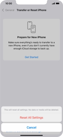 Press Reset All Settings. Wait a moment while the factory default settings are restored. Follow the instructions on the screen to set up your phone and prepare it for use.