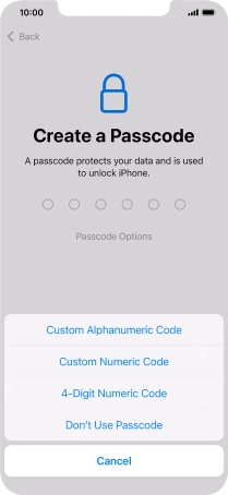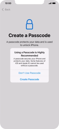 Follow the instructions on the screen to turn on use of phone lock code or press Don't Use Passcode.
