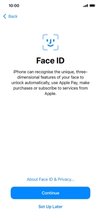 Follow the instructions on the screen to turn on use of Face ID or press Set Up Later.