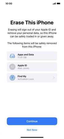Key in the password for your Apple ID and press Erase iPhone. Wait a moment while the factory default settings are restored. Follow the instructions on the screen to set up your phone and prepare it for use.