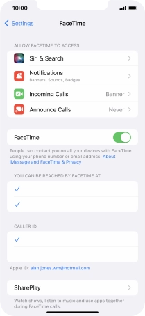 Press the required setting below "YOU CAN BE REACHED BY FACETIME AT".