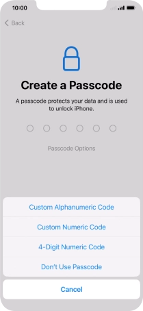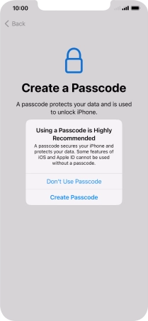 Follow the instructions on the screen to turn on use of phone lock code or press Don't Use Passcode.