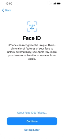 Follow the instructions on the screen to turn on use of Face ID or press Set Up Later.