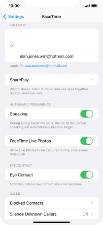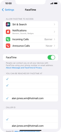Press the required setting below "YOU CAN BE REACHED BY FACETIME AT".