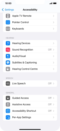 It is possible to select more accessibility settings, you can, e.g., turn the accessibility shortcut on or off, set up Guided Access and set up accessibility functions for certain apps.